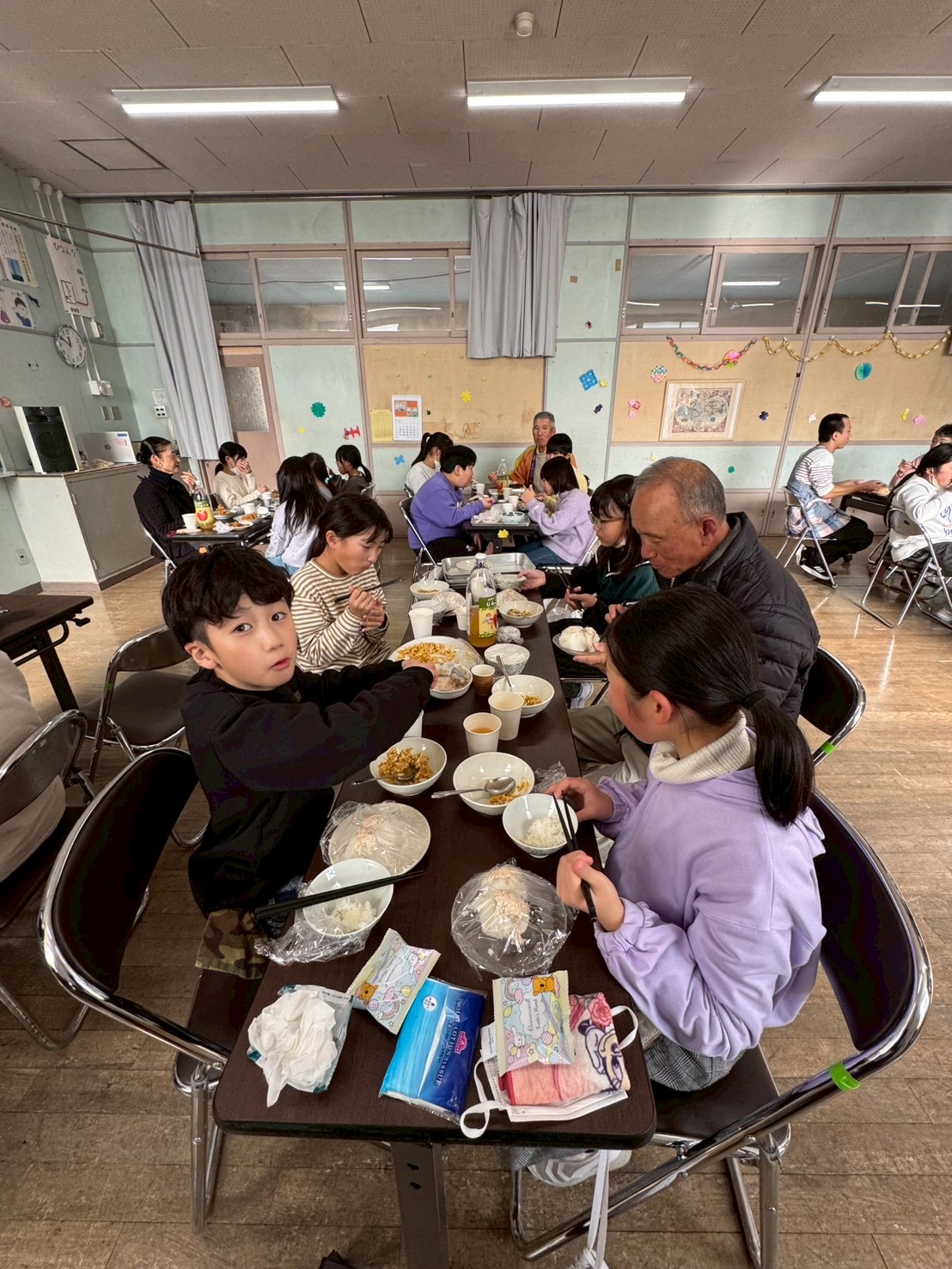 完成後は、各班に分かれて和気あいあいと料理をいただきました。子供たちはとても素直で、孫のような年ごろの子供とのふれあいはとても新鮮で一年の疲れが吹き飛びました。